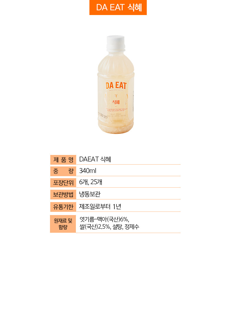 너무 달지않고 시원한 DAEAT 식혜 340ml
